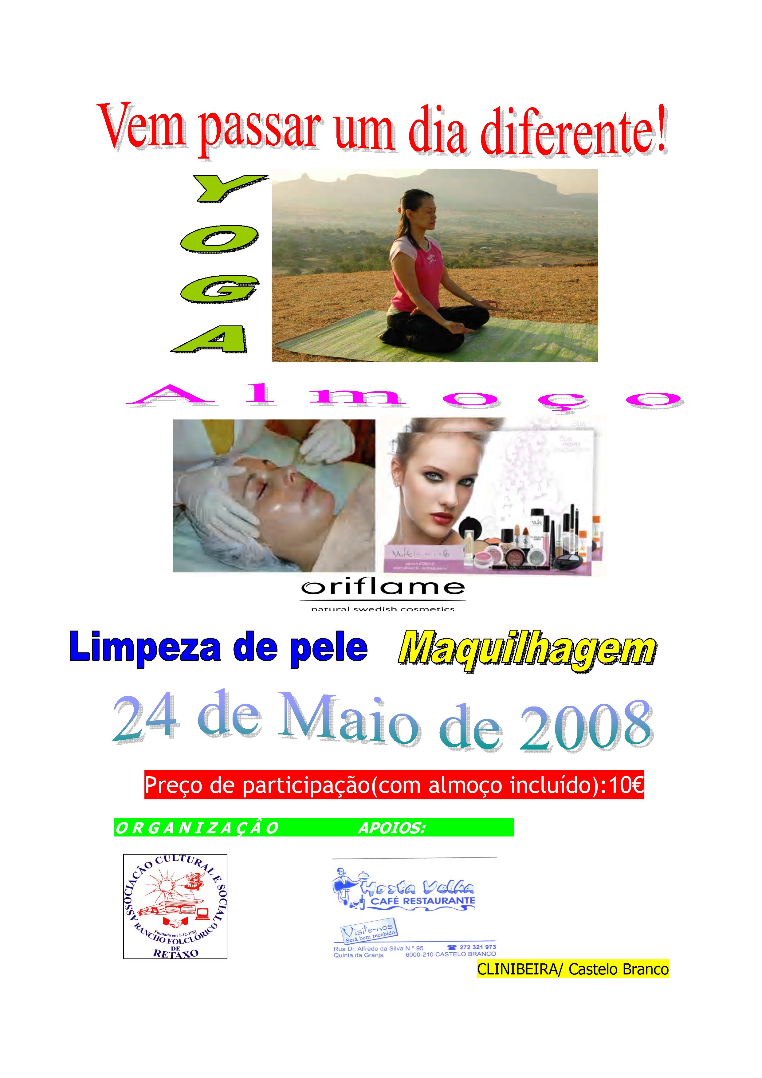 Maio 6, 2008 Francisco Faísca Actividade de Yoga e Maquilhagem Partilhe isto: Imprimir (Abre numa nova janela) Imprimir Share on X (Abre numa nova janela) X Email a link to a friend (Abre numa nova janela) E-mail Partilhar no Facebook (Abre numa nova janela) Facebook Gosto Carregando... Relacionado