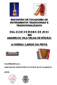 Outubro 8, 2011 Francisco Faísca Encontro de tocadores de instrumentos tradicionais e tradicionalizados Partilhe isto: Imprimir (Abre numa nova janela) Imprimir Share on X (Abre numa nova janela) X Email a link to a friend (Abre numa nova janela) E-mail Partilhar no Facebook (Abre numa nova janela) Facebook Gosto Carregando... Relacionado