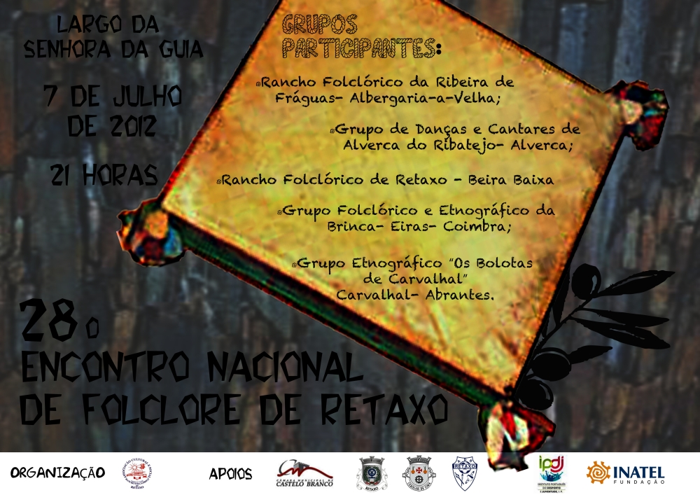 Junho 19, 2012Junho 21, 2012 Francisco Faísca 28.º Encontro Nacional de Folclore de Retaxo Partilhe isto: Imprimir (Abre numa nova janela) Imprimir Share on X (Abre numa nova janela) X Email a link to a friend (Abre numa nova janela) E-mail Partilhar no Facebook (Abre numa nova janela) Facebook Gosto Carregando... Relacionado