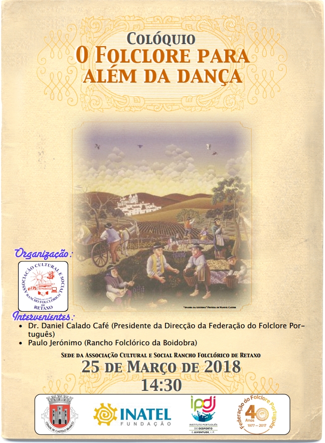Março 18, 2018 Francisco Faísca Colóquio “O Folclore para além da dança” Partilhe isto: Imprimir (Abre numa nova janela) Imprimir Share on X (Abre numa nova janela) X Email a link to a friend (Abre numa nova janela) E-mail Partilhar no Facebook (Abre numa nova janela) Facebook Gosto Carregando... Relacionado